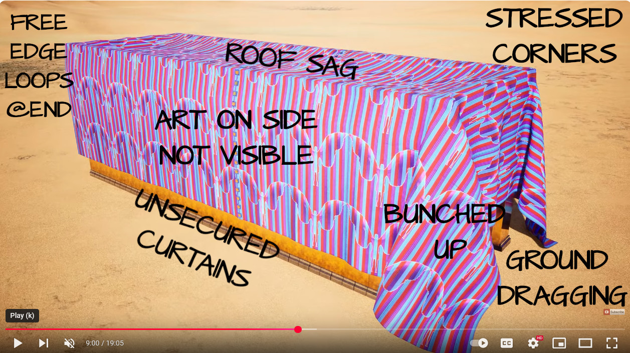 Question 103 (@3:50) -- Why does 119 ministries show the outer two layers of leather tied down while other fabric layers limp and blowing in the breeze, especially seeing that the Timna model adds extra materials to keep the lowest set secure?