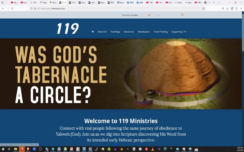 On Saturday the 15th of February, I got an email from Noel with invitation to come back on his YouTube channel for an interview, where Noel mentioned a recent 119 ministries critique video, which aired on Friday the 14th. The 119 ministires crew entitled it, “Was God’s Tabernacle a Circle’. While Noel offered some measure of warning, I was highly suspicious and equally amused by the title. After watching the video, it was clear that I was getting dragged into the court of public opinion—but without the courtesy of inquiry—much less the benefit of two or three witnesses. The 119 Ministries crew went so far as to advertise the prejudicial video on their home page, even featuring my own artistic content against me.