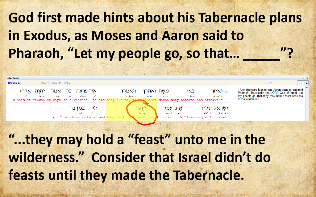 Question 11 (@1:02) -- Why doesn't 119 ministries mention that the Hebrew Exodus term for worship around the Tabernacle and "holy day" are rooted in חג, which conveys the idea of circle and circular?