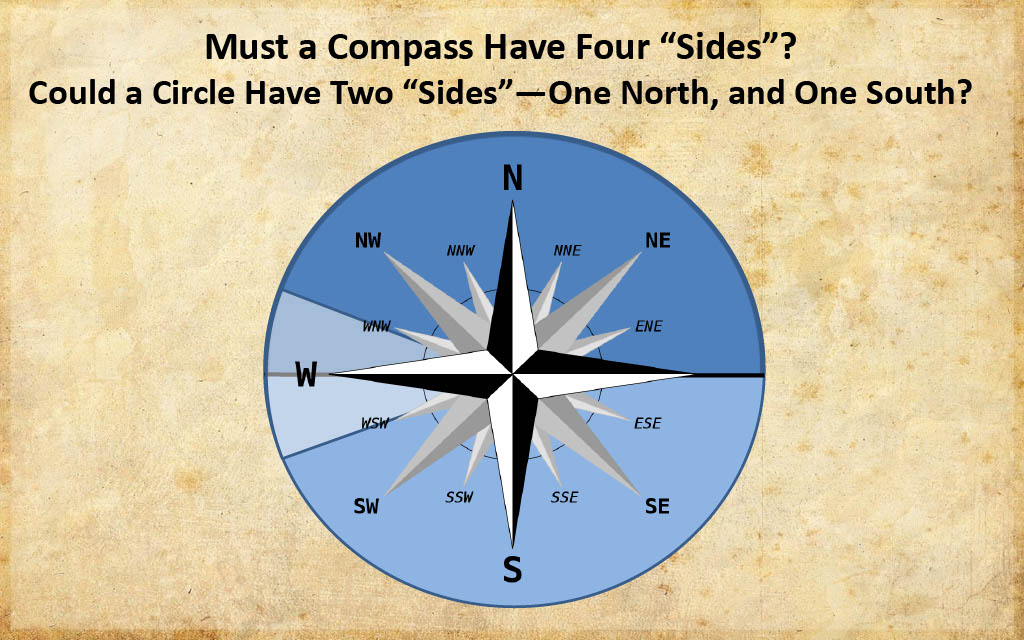 No information is given in Exodus that describes the walls as straight sides. Actually, the opposite proves to be true (e.g., Exodus 27:17). Compass bearings of north, south, east, and west are ultimately relative to their opposite direction. Bearings off of due north or south are still north or south bearings or orientations. The same could be said of "sides", especially if the sides are comprised of semicircles, as Exodus 27:9-18 describes.