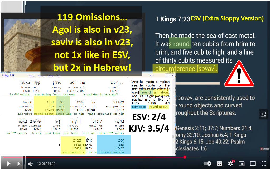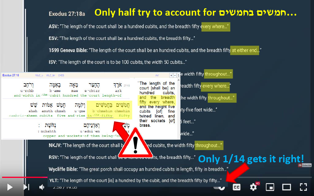 Question 23 (@2:56) -- Why does 119 ministries go out of their way to favor translators that neglect the extra 50 detail altogether (citing ESV as Bible of choice in this video), casually neglecting the reference to the other dimension called out in the YLT?