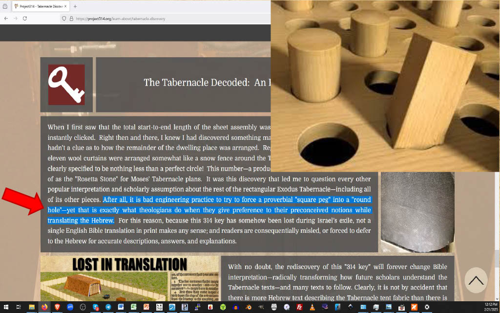 There is more to "testing everything" than just reading the text in the case of Tabernacle studies; after all, a model must not just comply with Exodus texts, but it must be physically capable of standing after the Bible instructions are followed to build the model. The round dome Project 314 model has been demonstrated to work in real life via scale modeling, plus it meets ALL requirements and descriptions of Exodus texts.