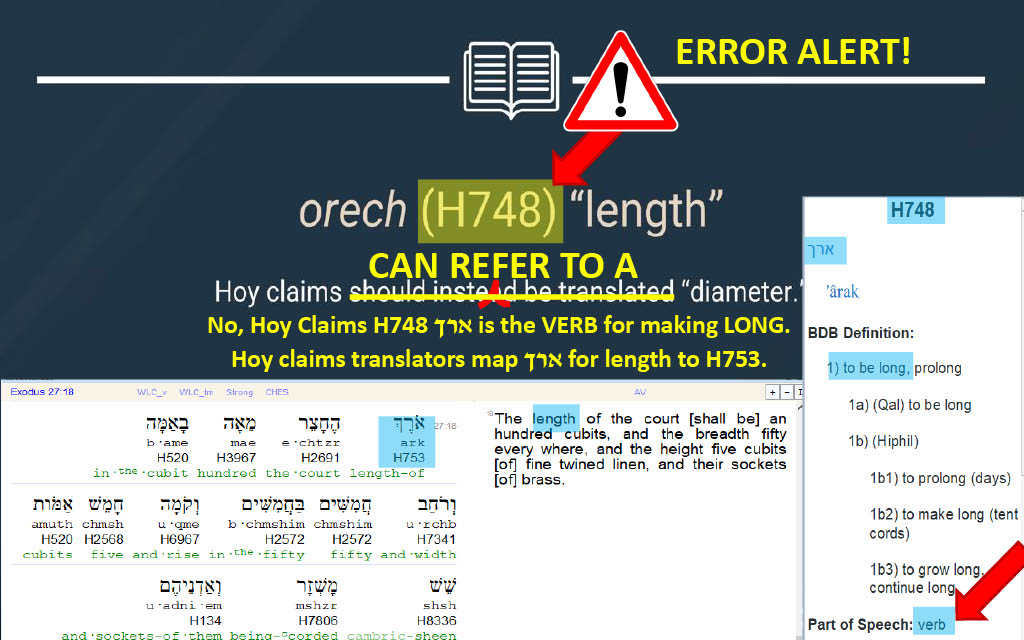 Question 36 (@5:56) -- Where does 119 ministries find "Hoy claim that Strong's H748 for ארך "length" (orech) should be TRANSLATED as diameter"?