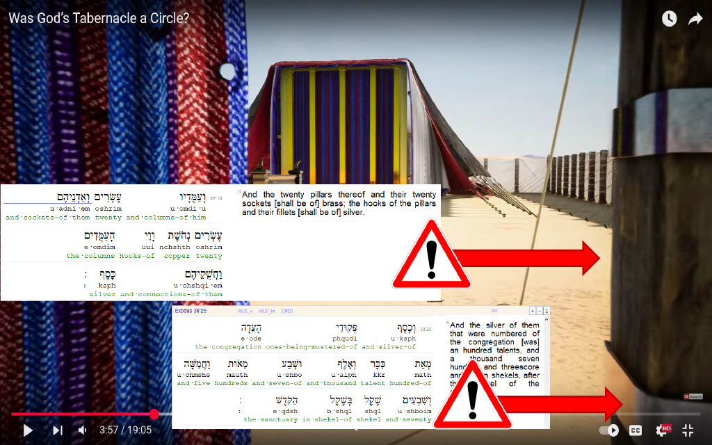 There are numerous cases within 119's CGI model that do not conform to quantities as identified in Exodus. Claims made to the Tabernacle being "a rectangle" are as absurd as the "Tabernacle a Circle" title as the rectangle again is a mere 2D plane shape bound by 2 sets of 4 parallel liens. If a Hebrew teacher cannot count to four, it stands to reason that his command over other subjects, like Bible history, ancient construction, or exegesis would be suspect.